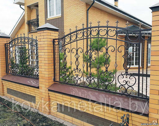 Указанные материалы помогают создавать уникальные современные ограждения с привлекательным внешним видом. Металл покрывается сверху слоем полимерной краски, можно выбрать абсолютно любой оттенок, чтобы добиться максимального сочетания с внешним видом дома.